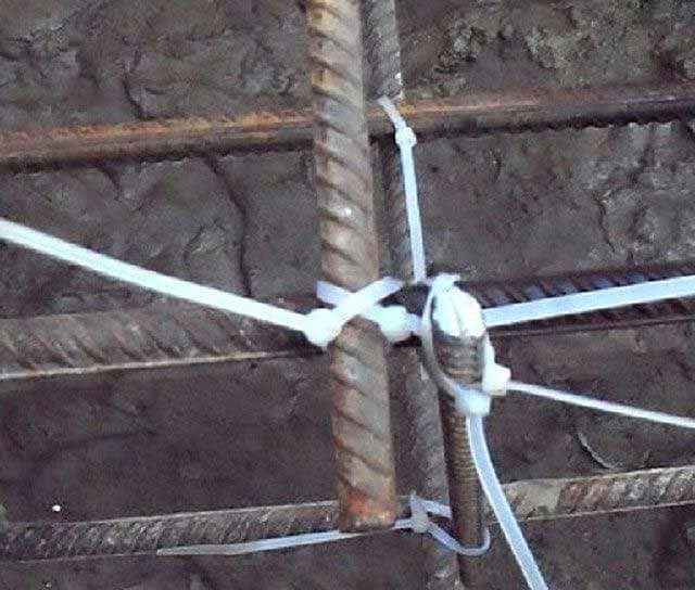 Для армирования сеток также используется пластиковый хомут. Он может быть использован для фиксации композитной заливочной сетки или для скрепления железных прутьев с пластиковыми.