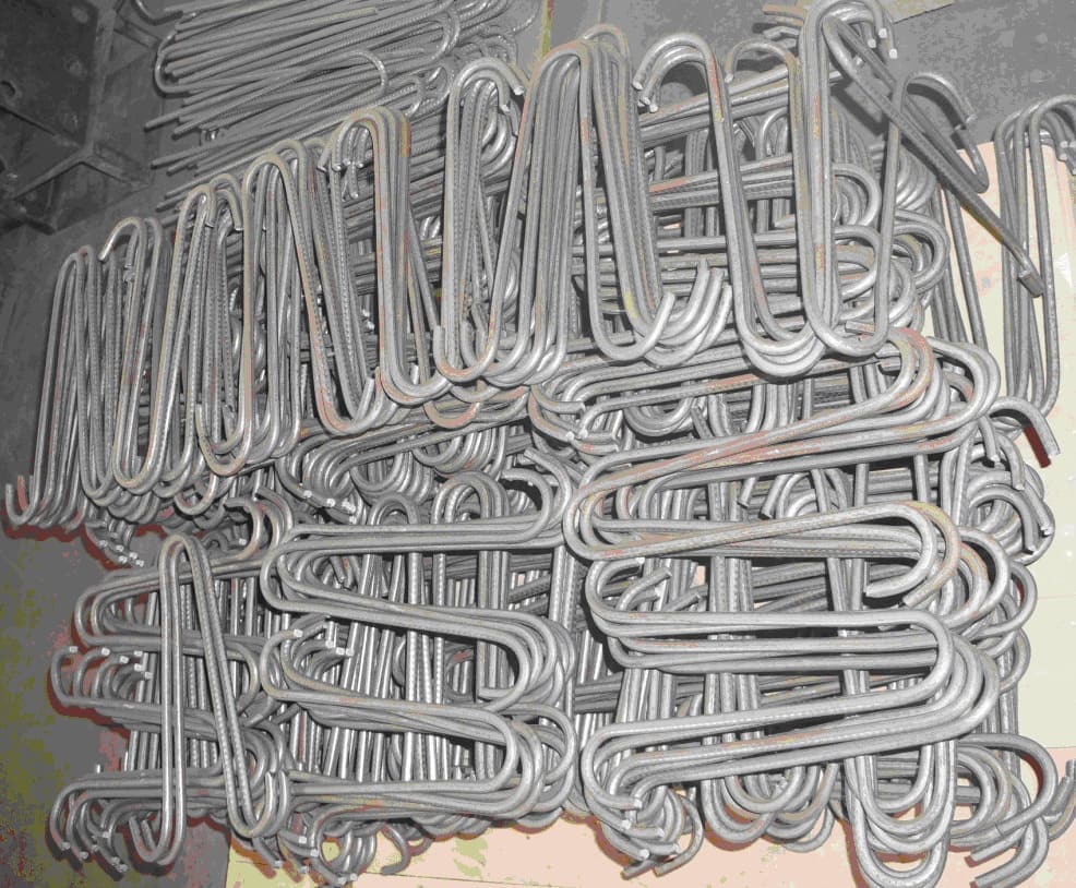Обычно, для изготовления хомутов используются стальные прутья с гладкой поверхностью, реже - с рифленой. Если использовать рифлёную сварную арматуру, оконечности хомутов необходимо связать, так как марка стали достаточно мягкая и требует дополнительной фиксации. В случае использования гладкого прута, концы изделия обрабатываются в виде удерживающих крюков.