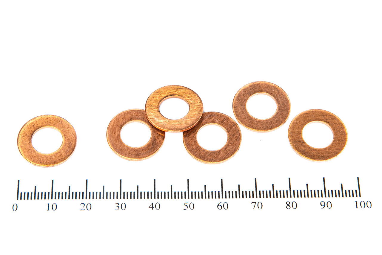 Медные шайбы применяют для уплотнения в топливных насосах, двигателях, масляных насосах, гидравлических, пневматических соединениях. Шайба имеет высокую пластичность и высокую стойкость против коррозии, это позволяет применять в агрегатах высокого давления. Физико-химические свойства меди обеспечивают работоспособность шайб в различных агрессивных средах при больших амплитудах рабочих температур.